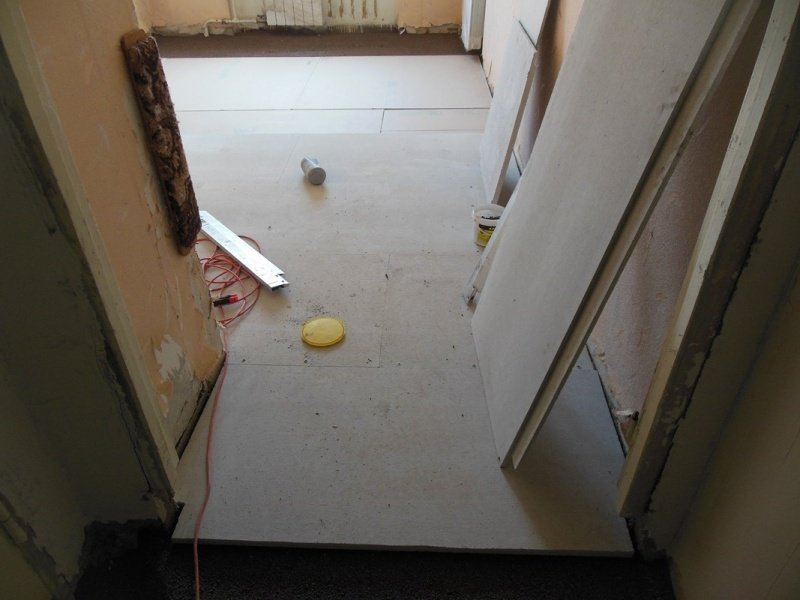 Последовательность действий при подготовке предполагает нарезку фанеры и выкладку ее поверх сухой стяжки. Фанера проклеивается специальным клеем и надежно закрепляется саморезами. Далее для выравнивания слоя фанеру циклюют. От циклевки можно отказаться, если используемая фанера имеет равную толщину на всех участках.